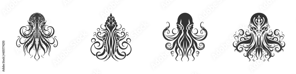 Fototapeta Black and white octopus logo. Cthulhu logo. Vector illustration.