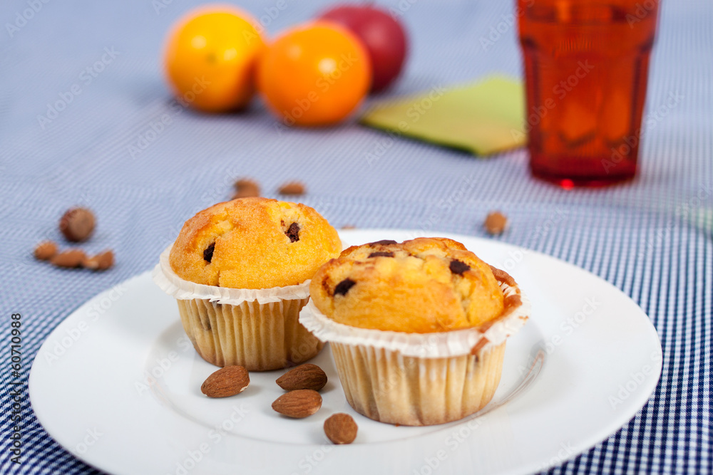 Fototapeta Złociste babeczki na talerzu z migadłami