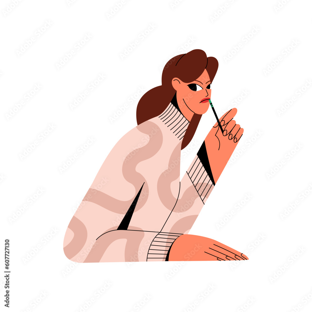 Fototapeta Thoughtful displeased envious woman looking with doubt