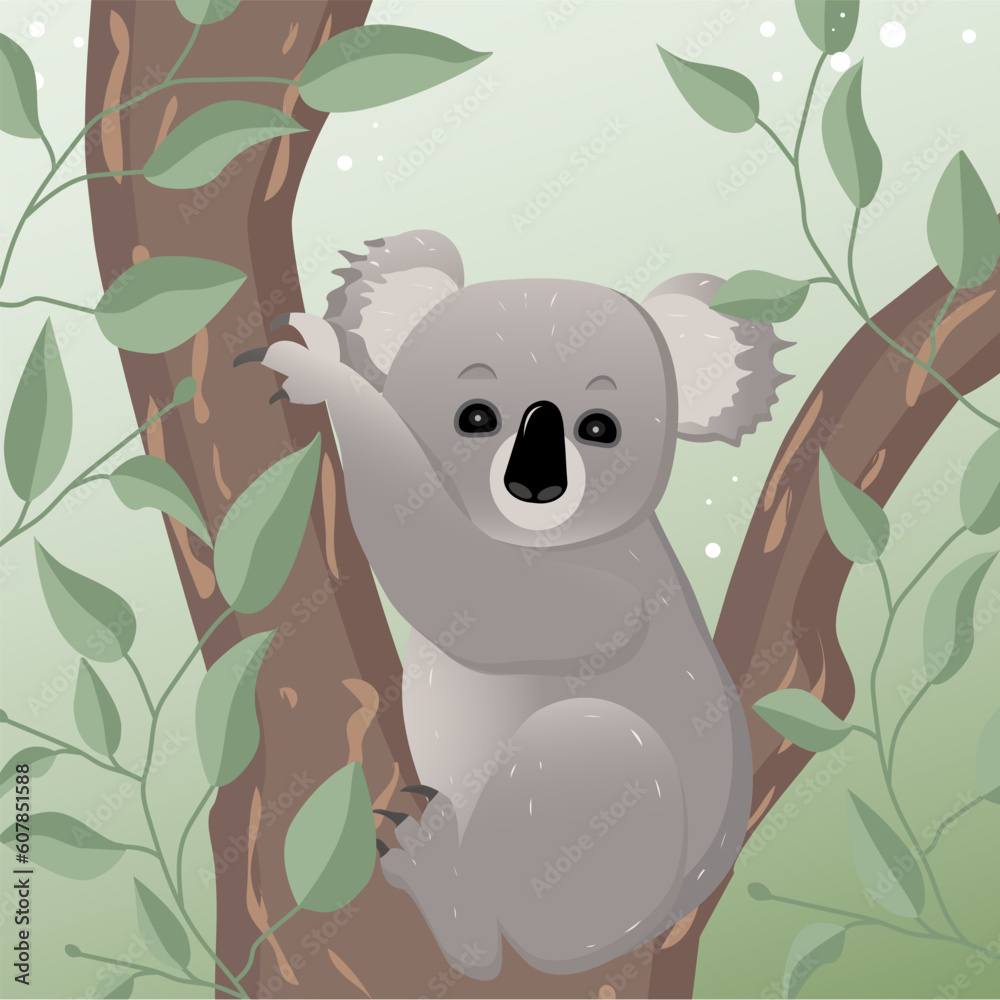 Fototapeta koala bear sit on the tree cartoon animal design flat vector illustration
