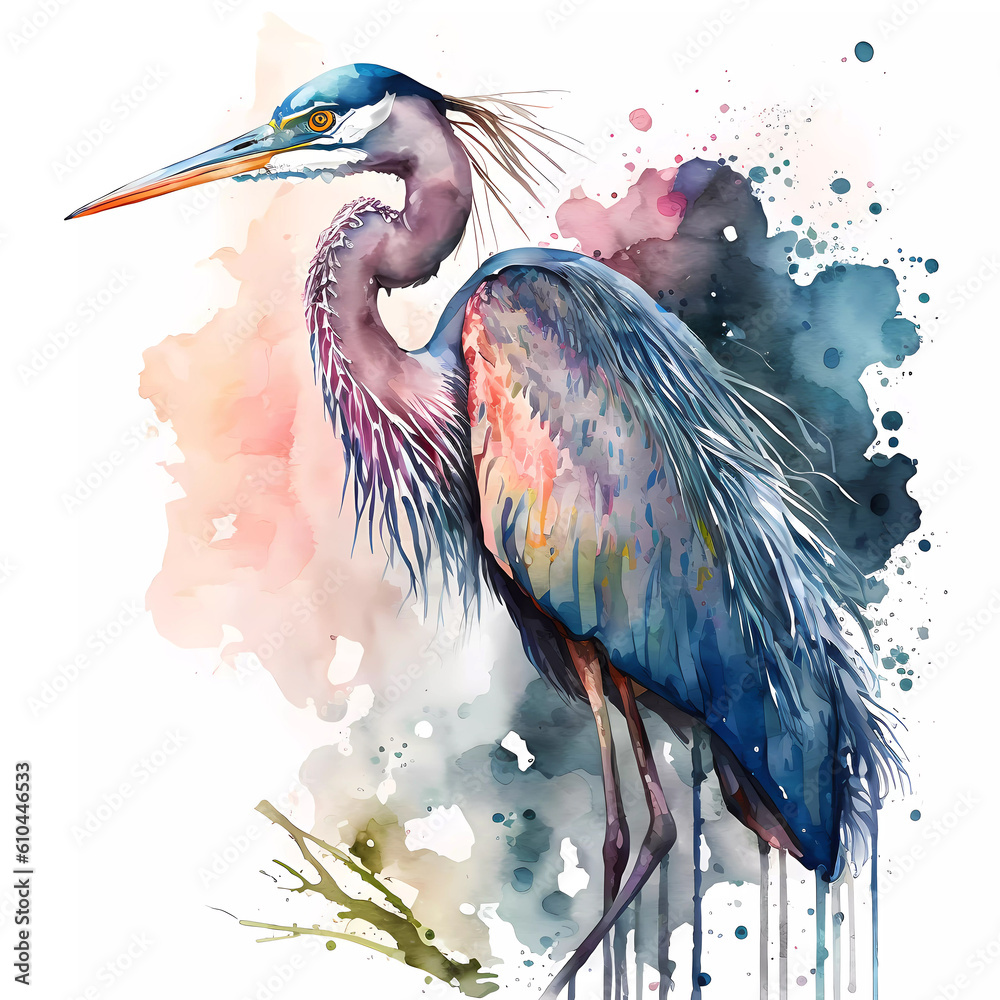 Fototapeta Watercolor blue heron painting