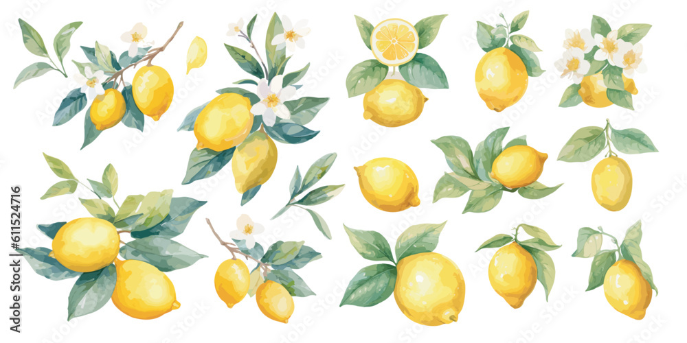 Fototapeta watercolor lemon with flower clipart for graphic resources
