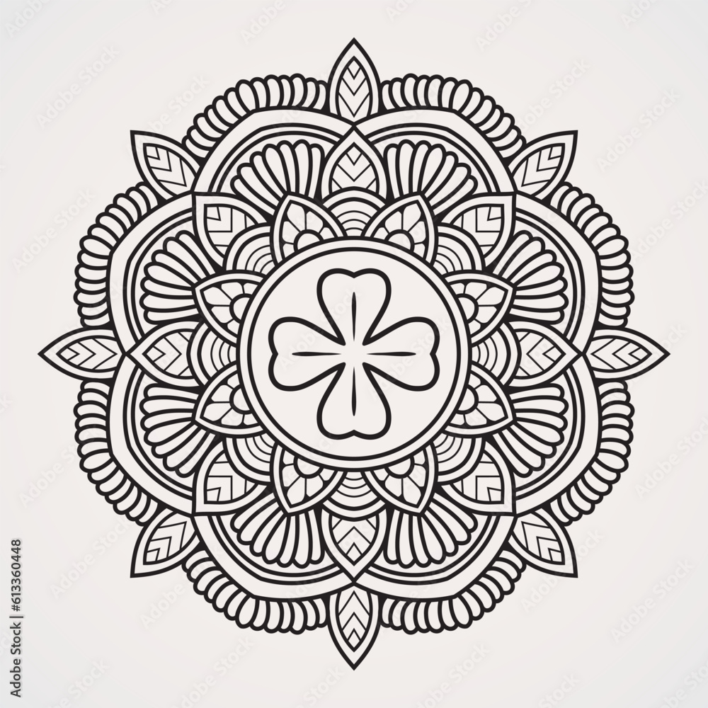Fototapeta Flower mandala with traditional pattern and blend of four-leaf clover