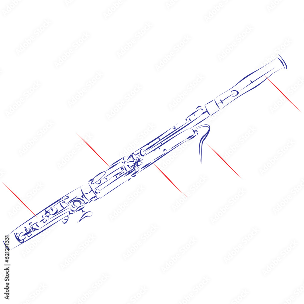 Fototapeta Continuous line drawing of bassoon with indicators for component parts isolated on white