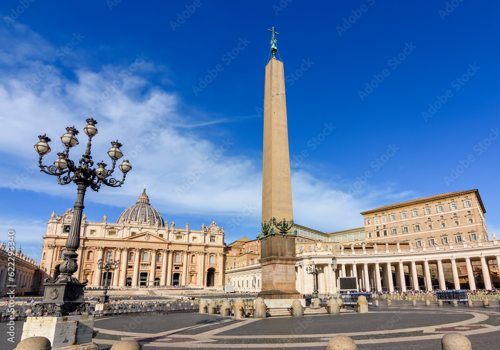 Fototapeta St Peter's basilica and Egyptian obelisk on St Peter's square in Vatican, Rome,