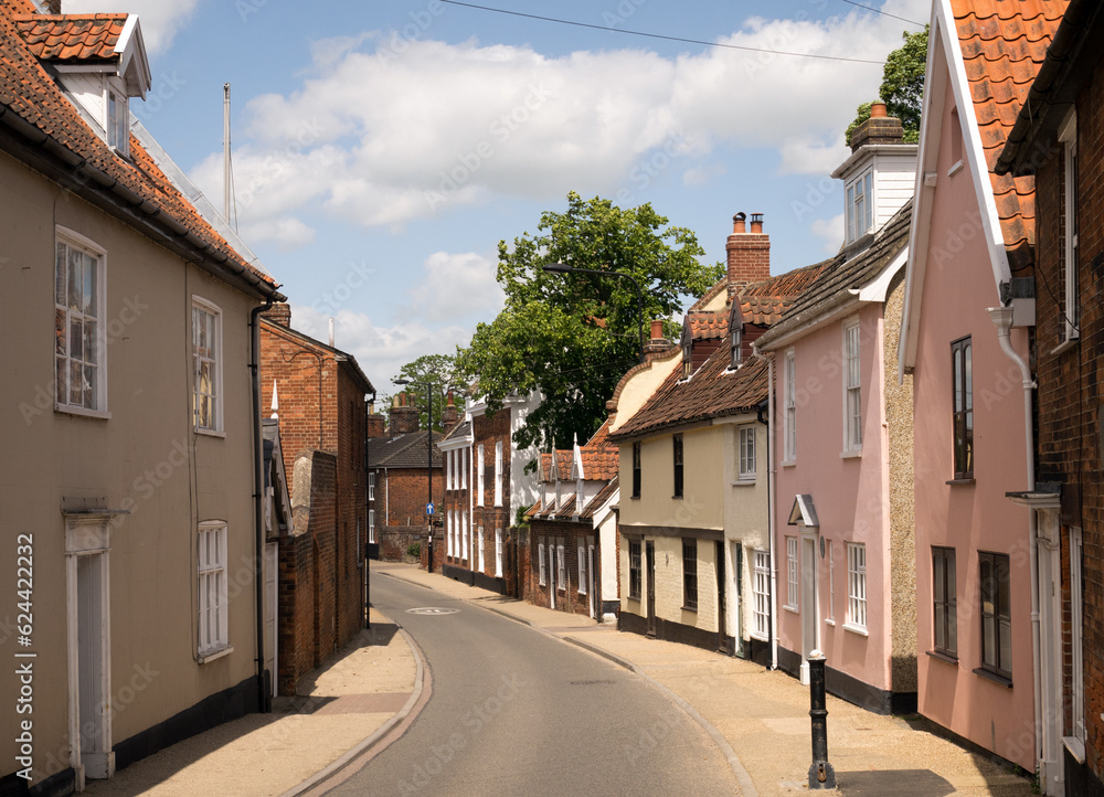Fototapeta Attractive Street of Historic Georgian & other Ancient Building in The Market Town of Beccles, Suffolk, England, UK