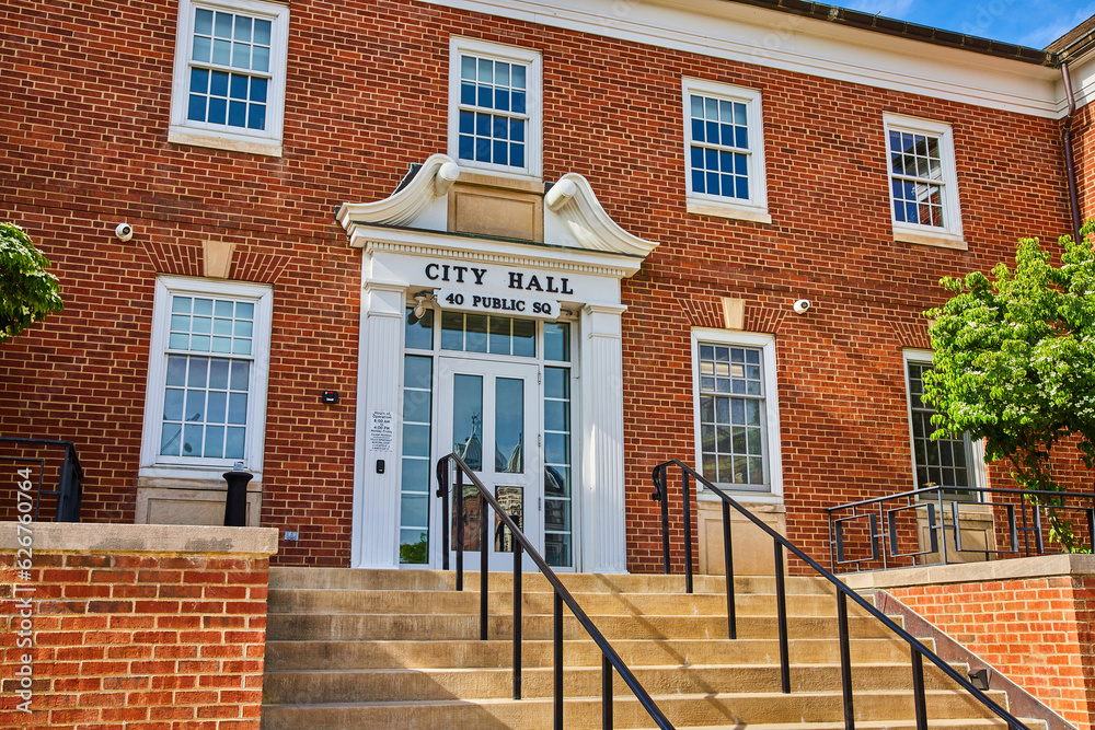 Fototapeta Close up of City Hall exterior in downtown Mount Vernon Ohio