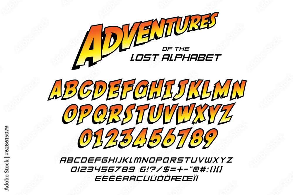Alphabets for adventure titles and subtitles. Vector typography illustration