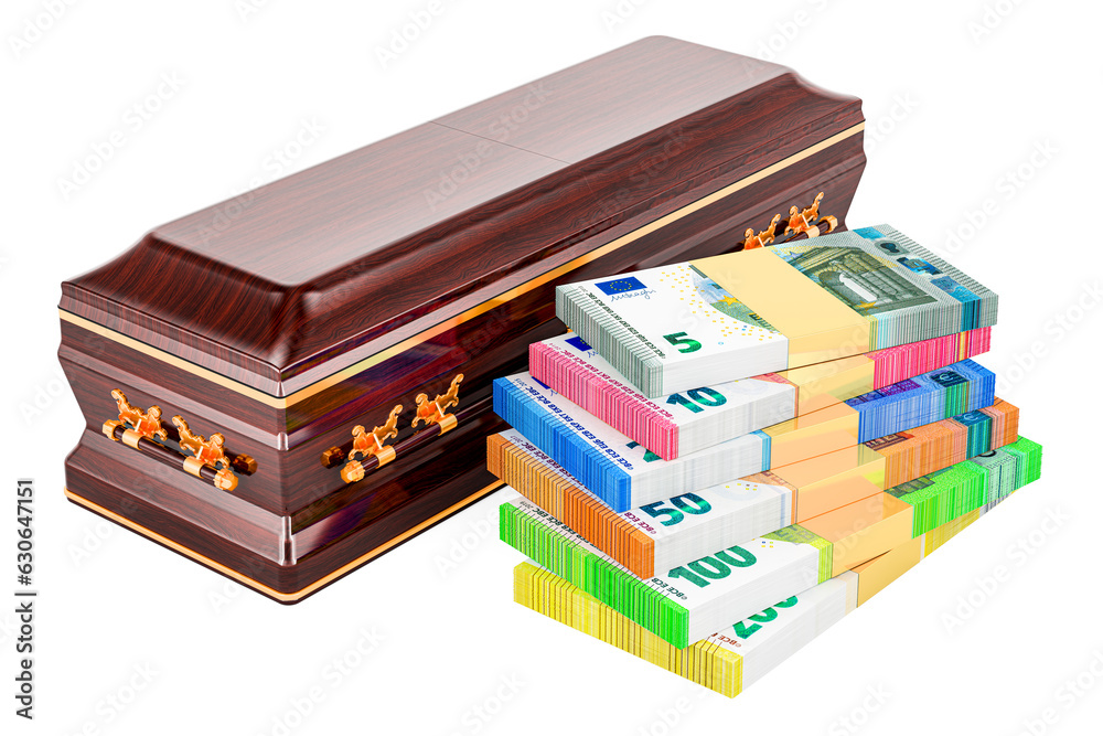 Fototapeta Wooden coffin with euro packs. 3D rendering