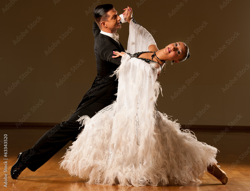 Fototapeta Professional ballroom dance couple preform an exhibition dance