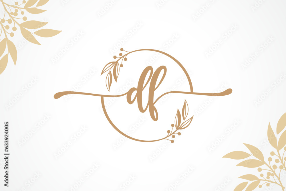Fototapeta luxury gold signature initial df logo design isolated leaf and flower