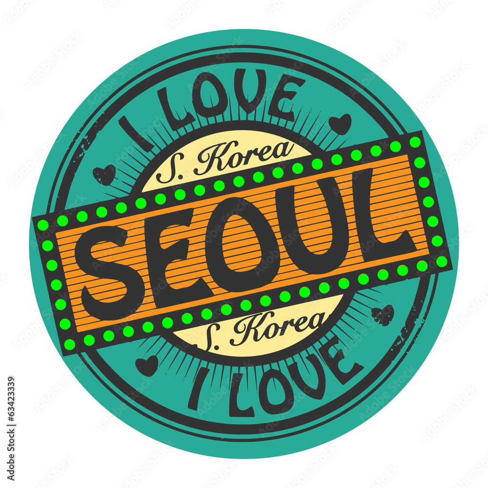 Fototapeta Grunge color stamp with text I Love Seoul inside, vector