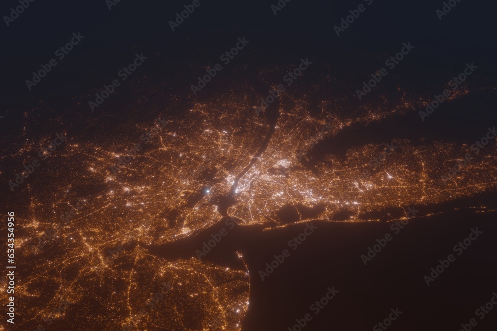 Fototapeta Aerial shot of New York City at night, view from south