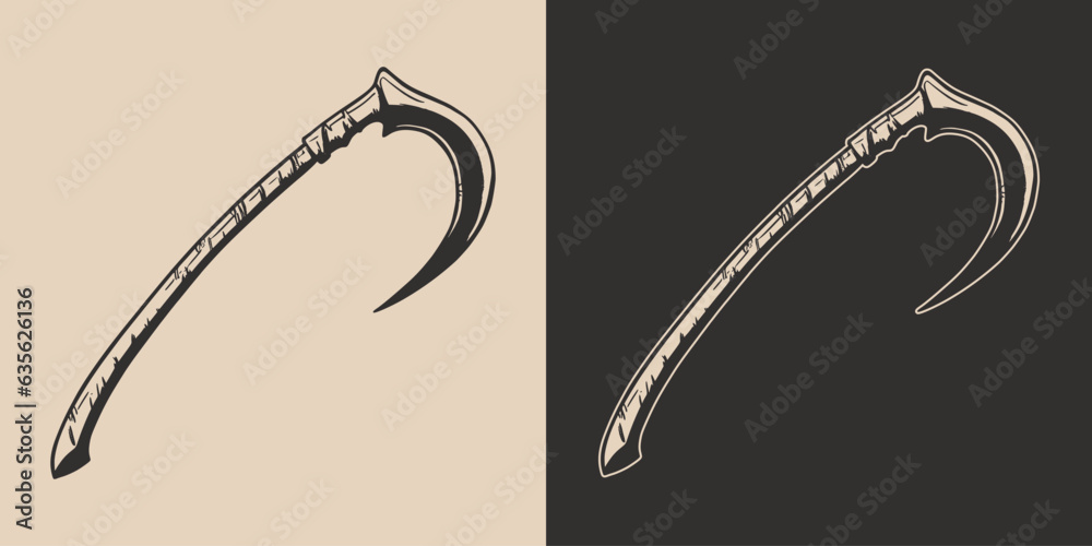 Fototapeta Vintage retro Halloween scythe reaper sword weapon element