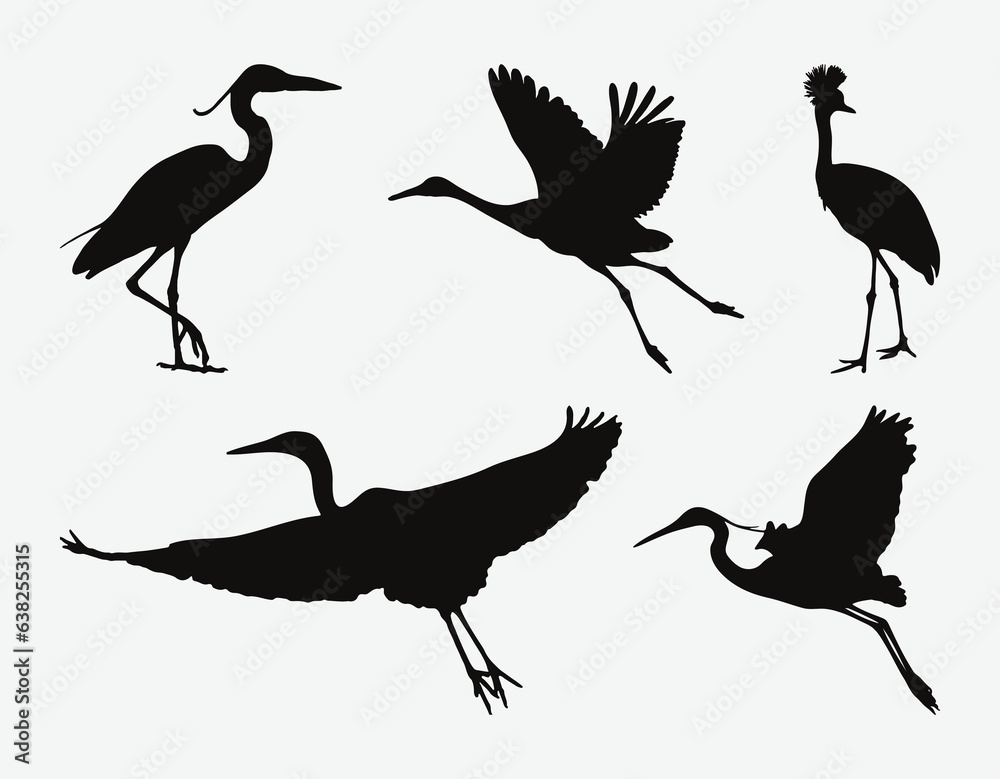 Fototapeta Graceful Heron Silhouettes Set, Majestic Avian Forms in Diverse Poses and Expres
