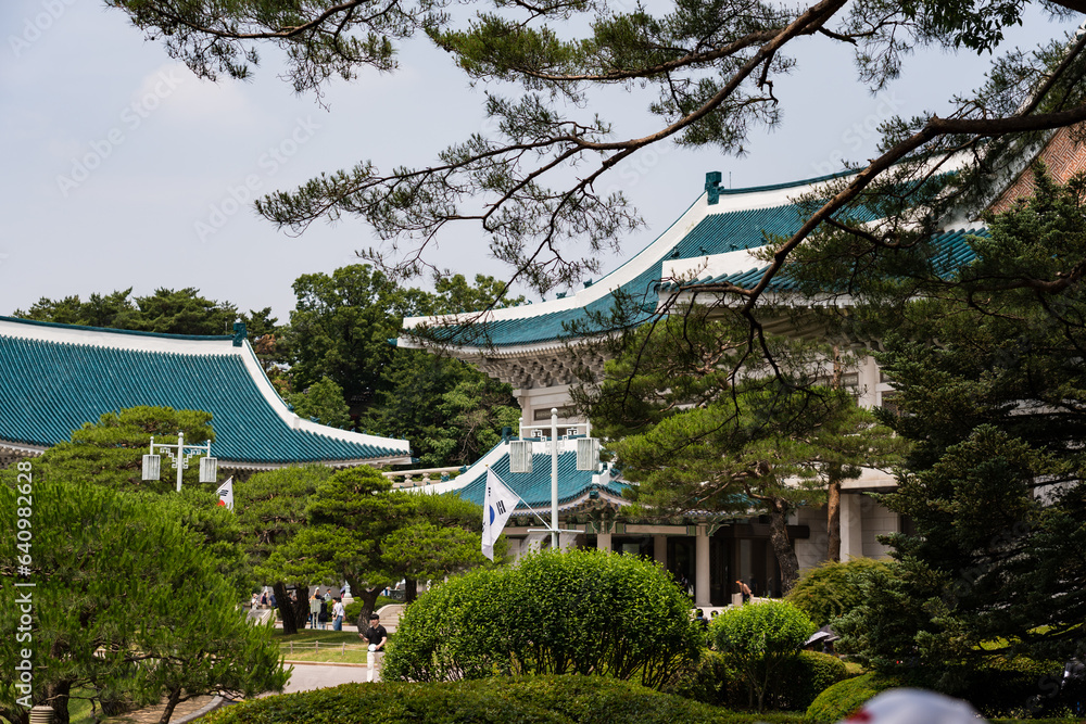 Fototapeta The blue house of Korea after public opening, Cheongwadae in Summer