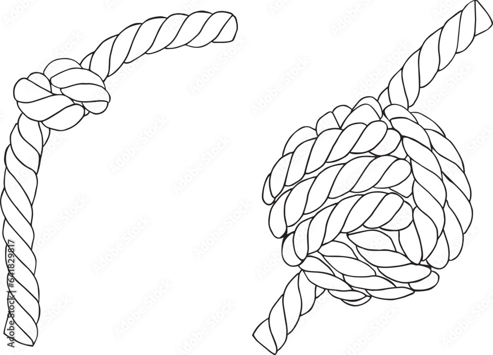 Fototapeta Set of knotted ropes cords monkey fist knot