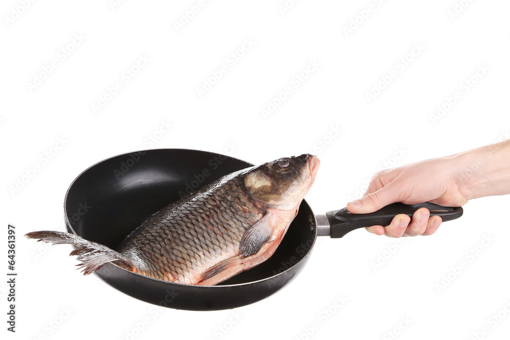 Fototapeta Carp fish on frying pan.