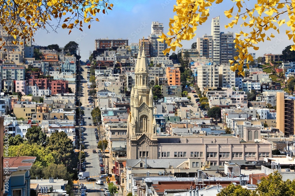 Fototapeta San Francisco, California. Fall leaves cityscape.