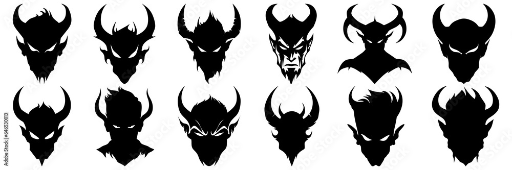Fototapeta Demon devil and hell silhouettes set, large pack of vector silhouette design, is