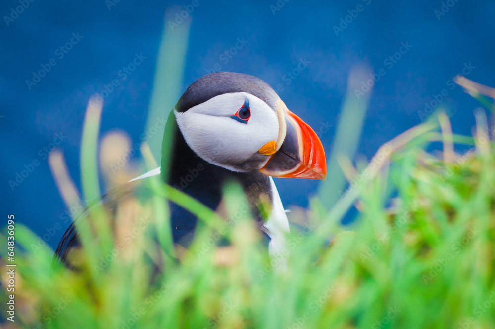 Fototapeta Atlantic Puffin on Latrabjarg Cape, Vestfirdir, Iceland.