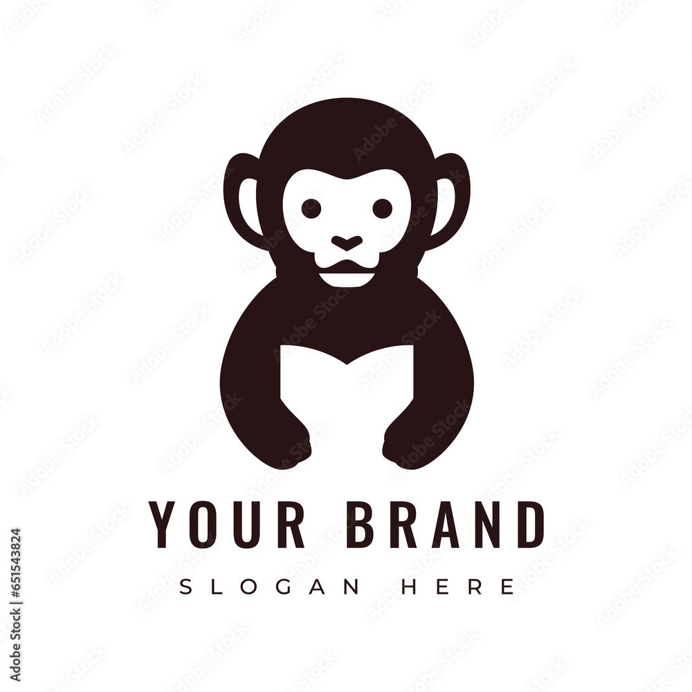 Fototapeta cute monkey animal mammal primate mascot wildlife character logo design vector g
