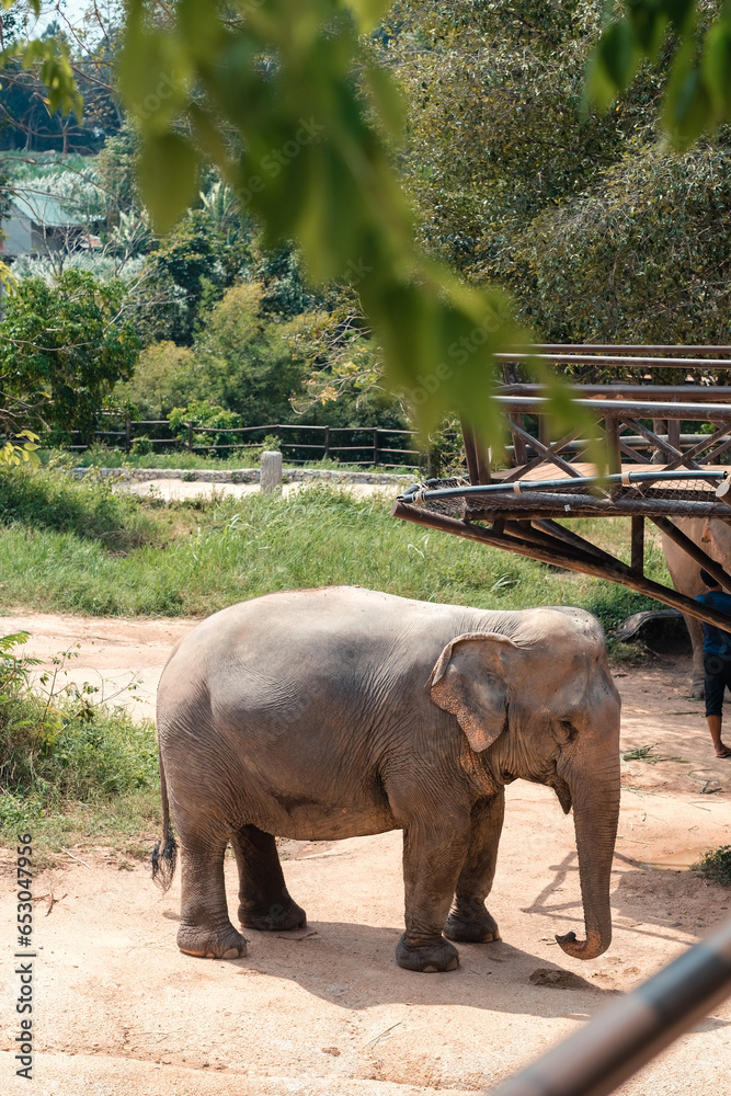 Fototapeta Elephants in the nature reserve on the island of Samui in Thailand