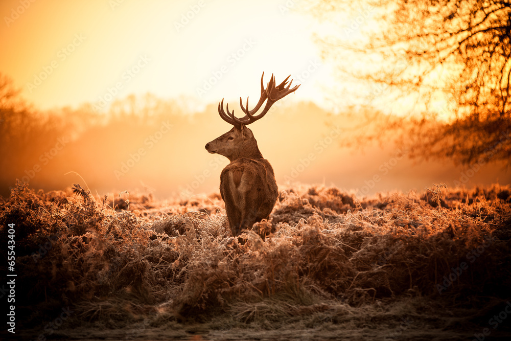 Fototapeta Red Deer in Morning Sun.