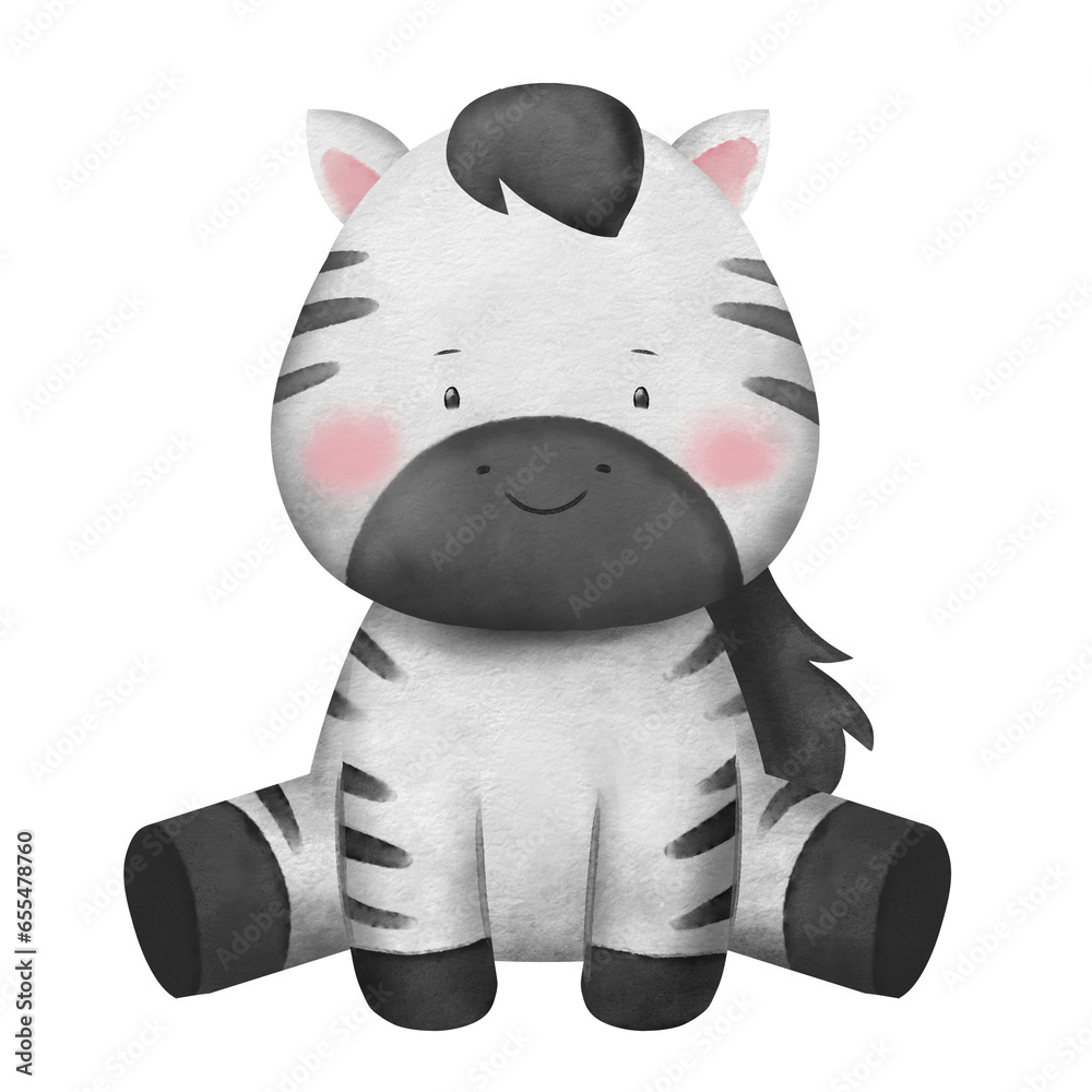 Fototapeta Cute zebra watercolor hand drawn safari