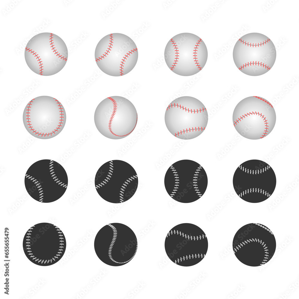 Fototapeta set of baseball ball with red stitches and white stitches
