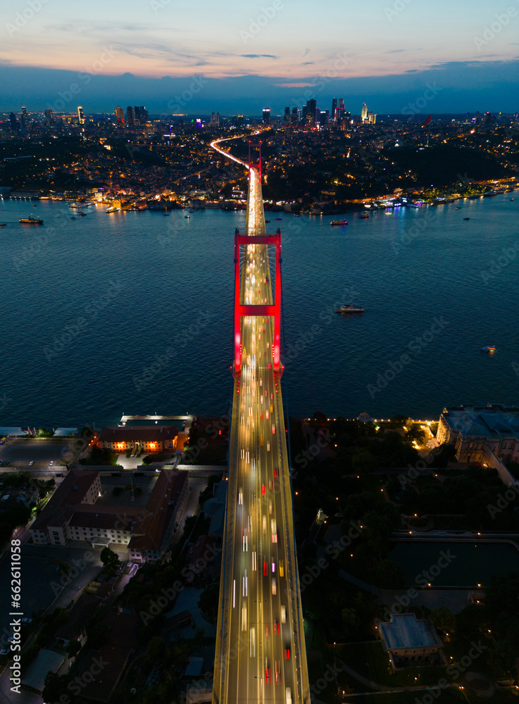 Fototapeta Drone view of the bosphorus bridge in Istanbul, turkey