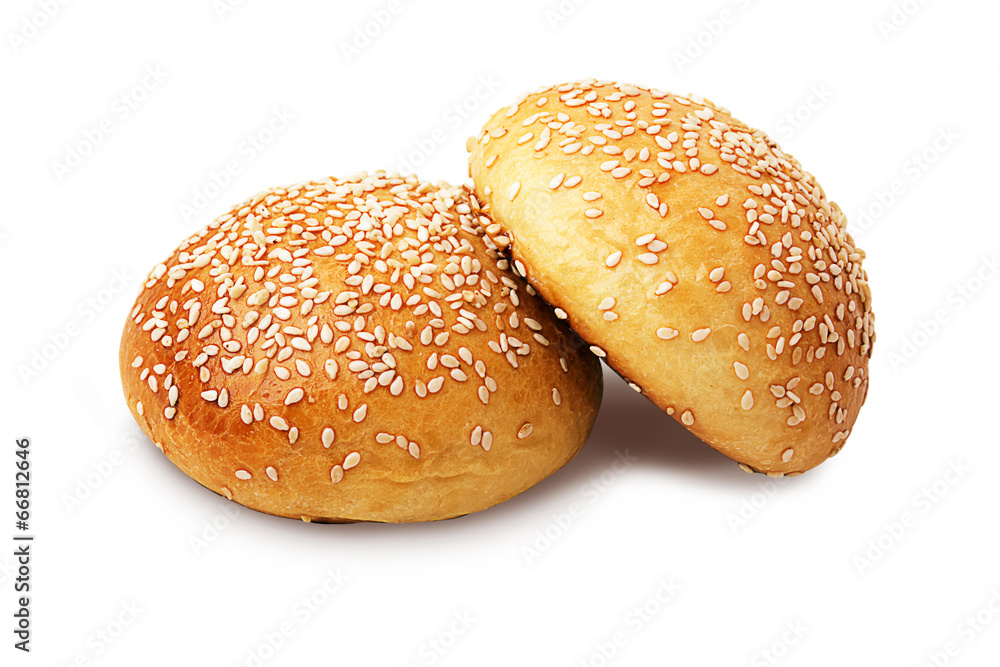 Fototapeta Two whole buns with sesame seeds isolated on white