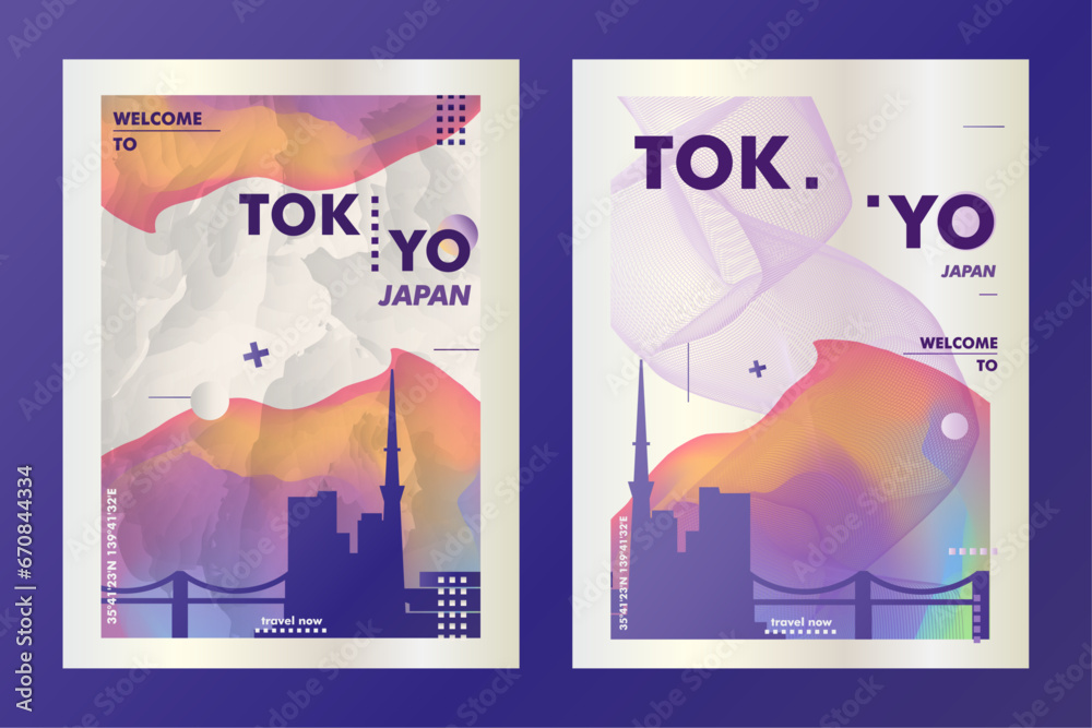 Fototapeta Japan Tokyo city poster pack with abstract skyline, cityscape, landmark and attraction