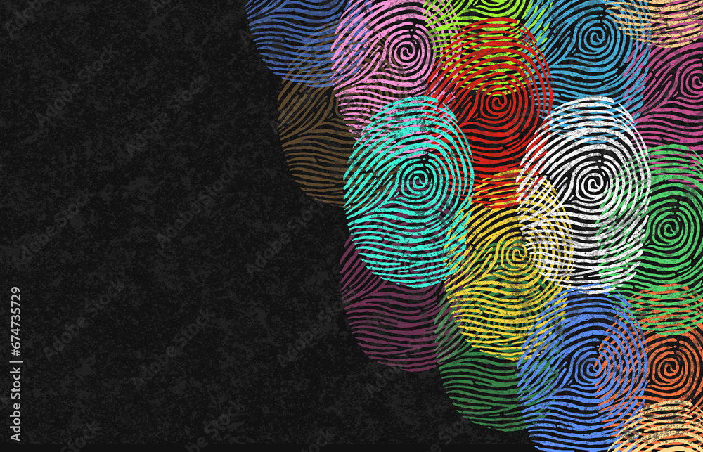 Fototapeta Diverse Identity Design group of multicolored fingerprints together as a beautif