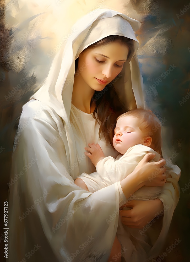 Fototapeta Scene of the birth of Jesus Christ, epiphany scene, Virgin Mary and Joseph