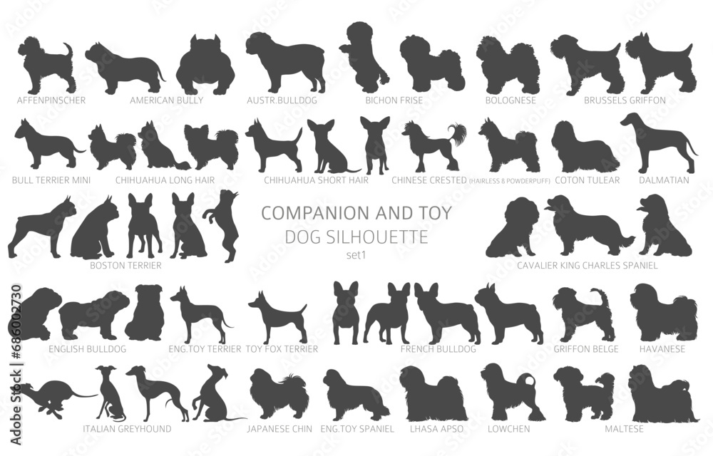 Fototapeta Dog breeds silhouettes, simple style clipart