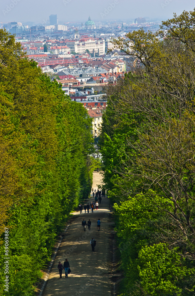 Fototapeta Cityscape telephoto view of Vienna from Schoenbrunn palace