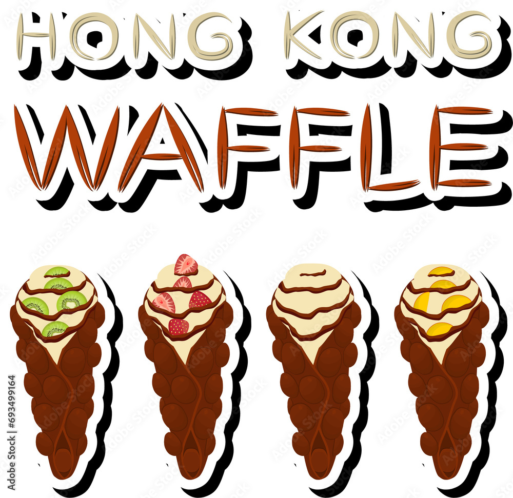 Fototapeta Illustration on theme big kit different types cone waffle with bubbles for desse