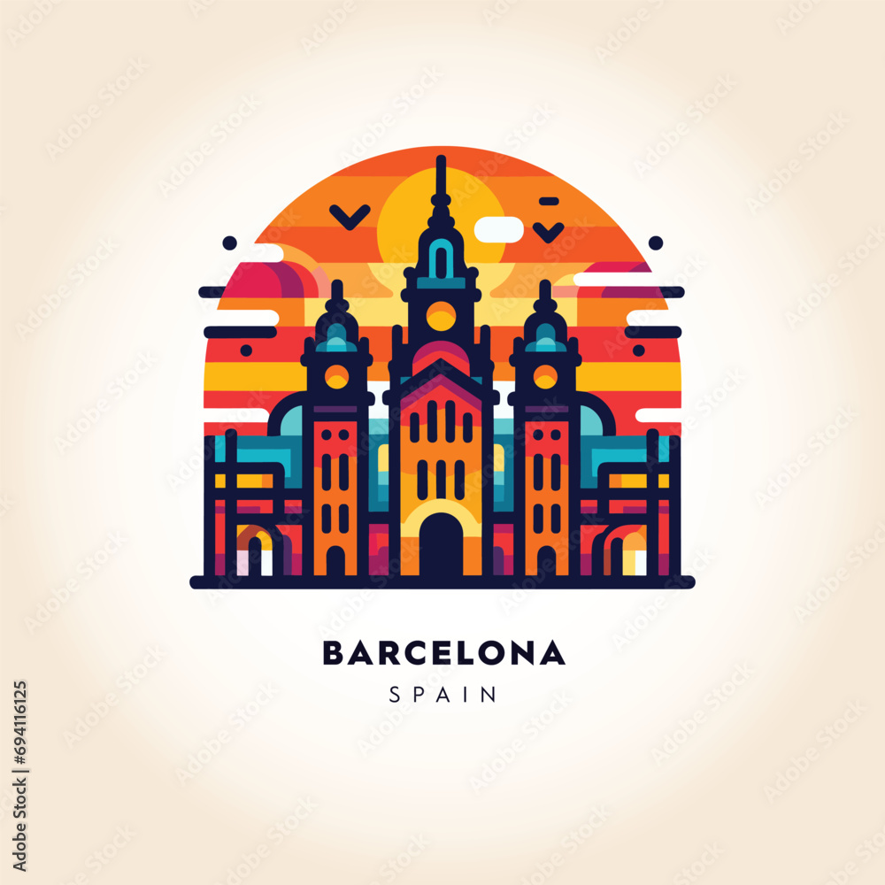 Fototapeta Barcelona Skyline: Colorful Abstract Warm-Toned Vector Illustration