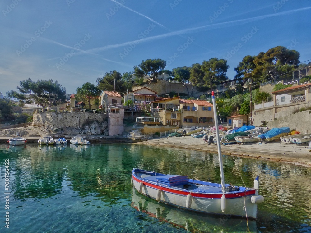 Fototapeta Niolon est une calanque habitée située sur la commune du Rove à environ 20 km au Nord-Ouest de Marseille, entre l'Estaque et Carry-le-Rouet au beau milieu de la Côte Bleue