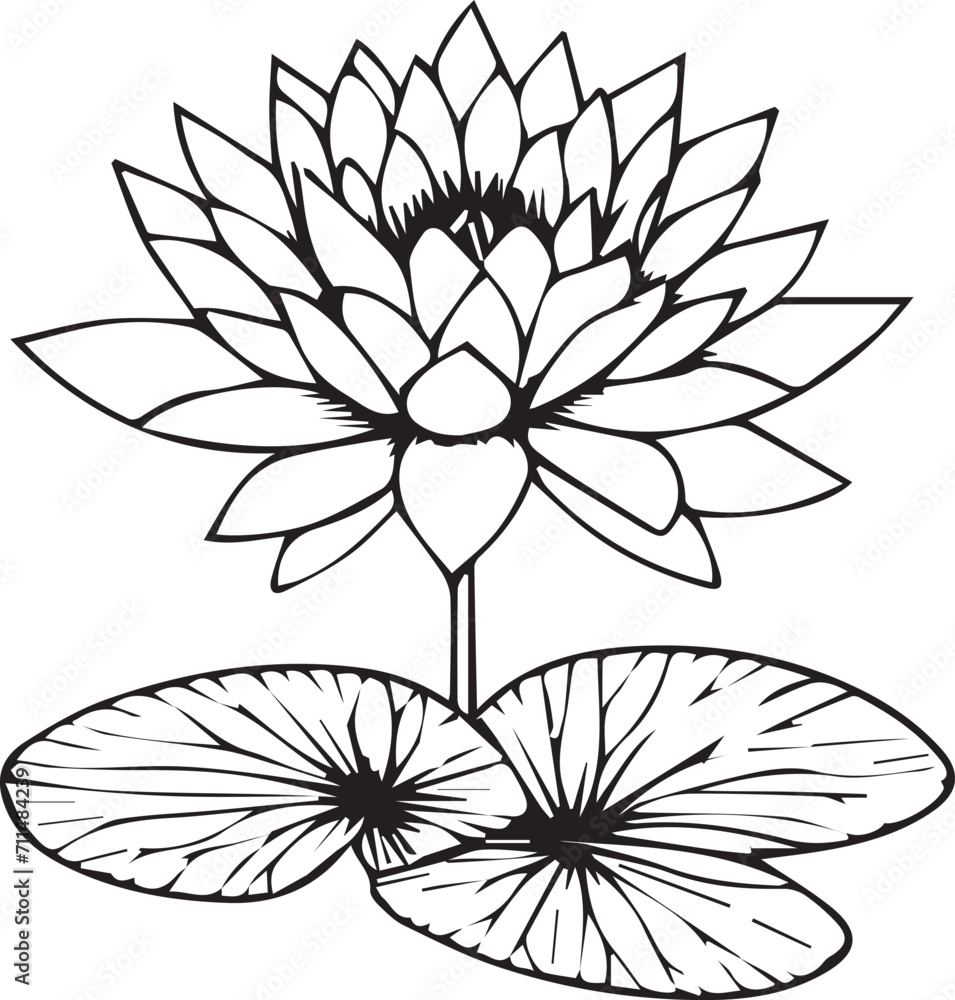 Fototapeta Flowers coloring pages, and book, Vector sketch of waterlily, Hand drawn waterlily, botanical leaf bud illustration engraved ink art style