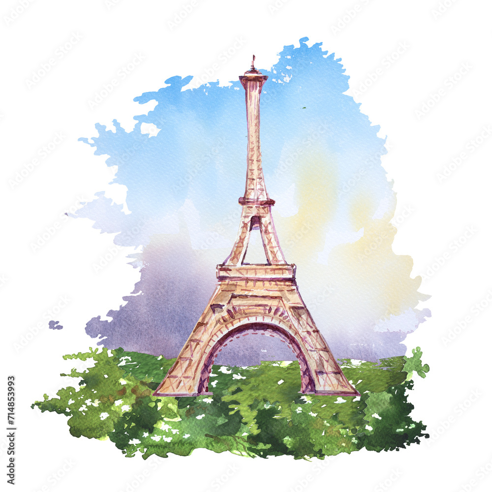 Fototapeta Watercolor hand painted Eiffel Tower in Paris,France