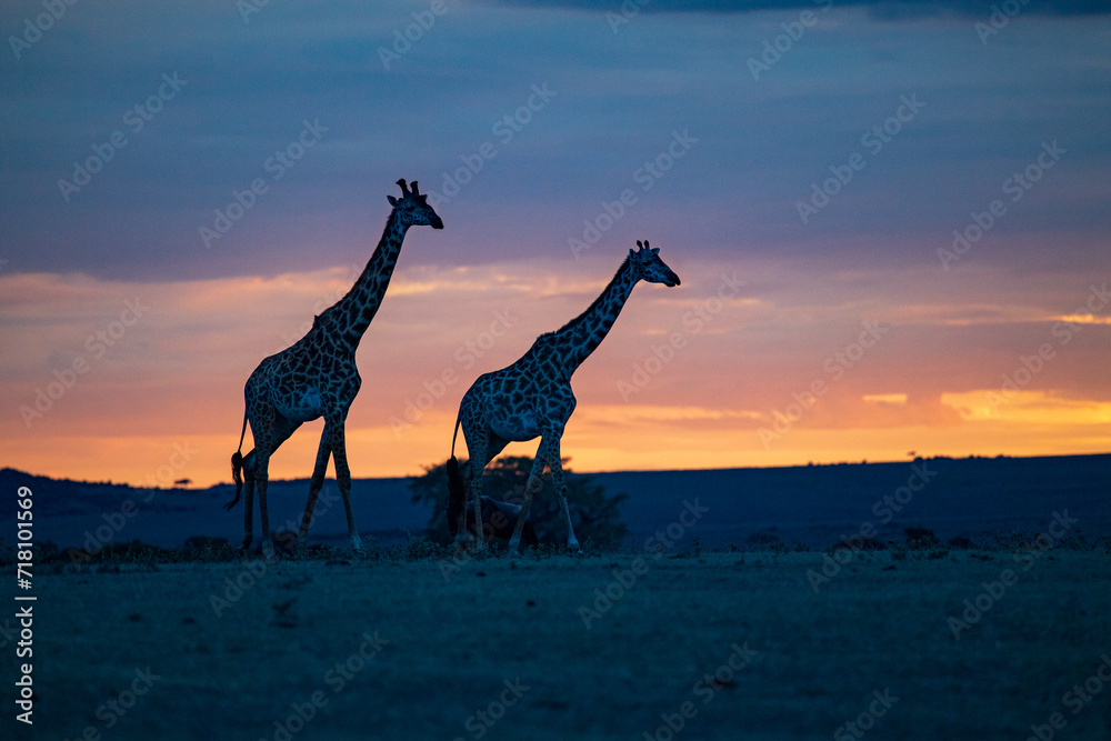 Fototapeta Kenyan Giraffes at Sunset,