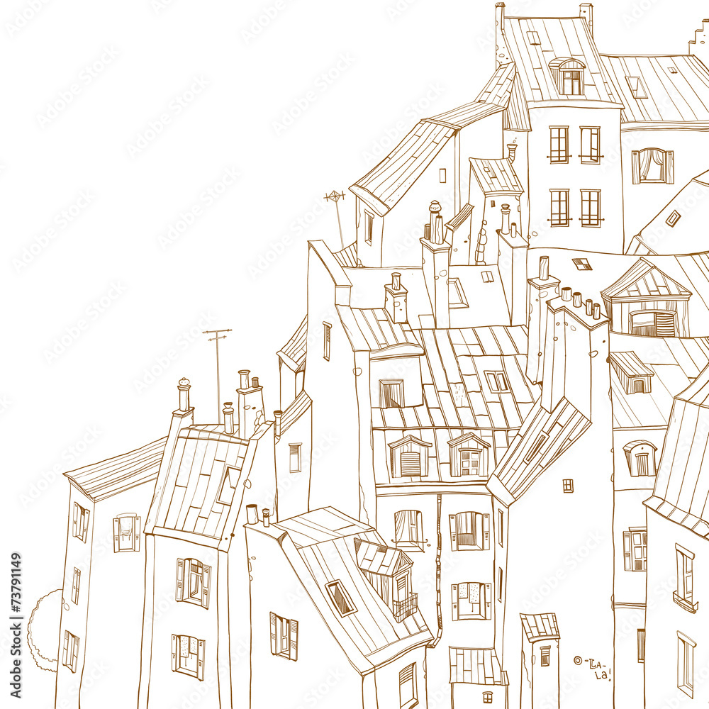 Fototapeta Roofs of Paris, view from above, outline drawing