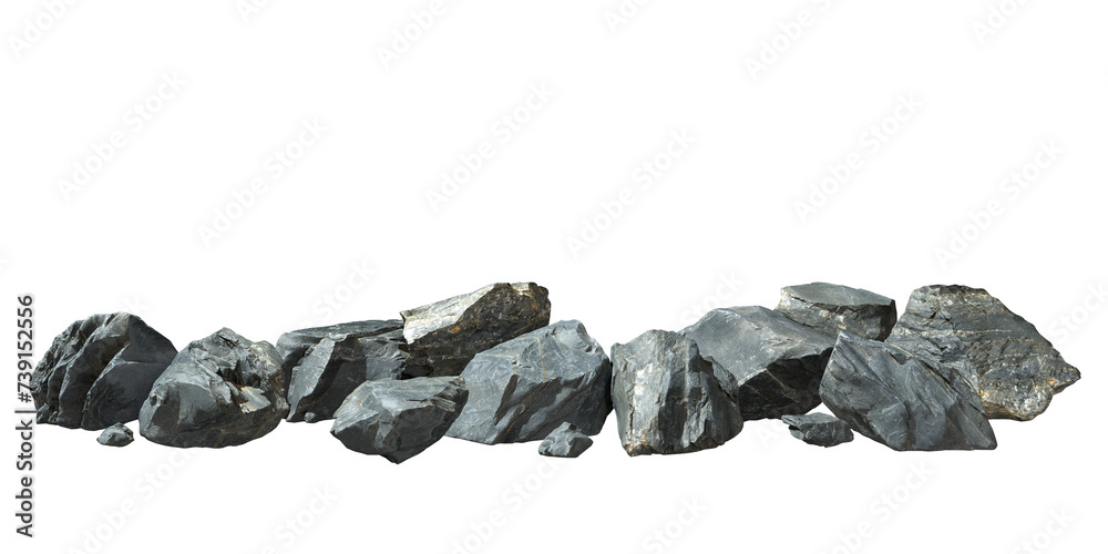 Fototapeta Realistic black stones scenery clipart on transparent backgrounds 3d render png