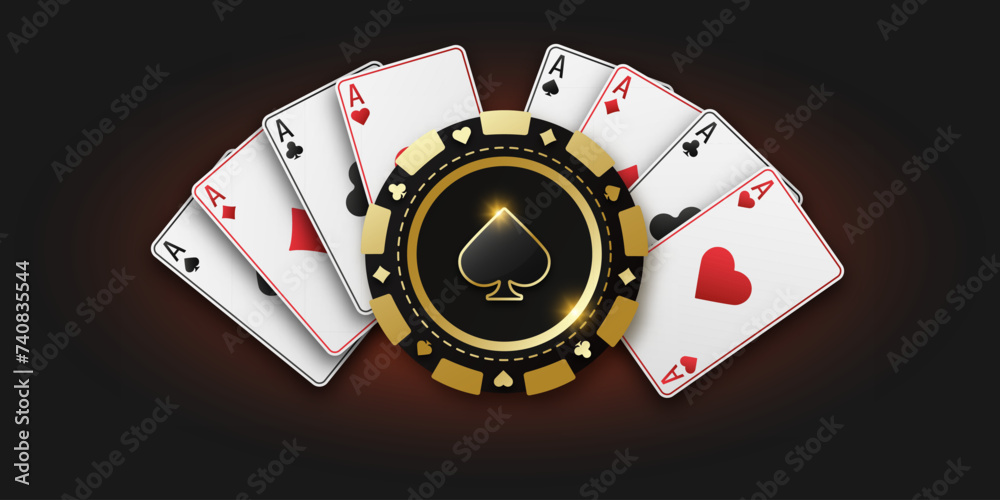 Fototapeta Realistic playing chip with the suit of spades, gambling tokens