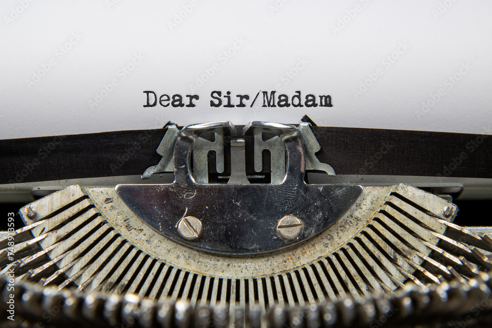 Fototapeta A close up of an old fashioned typewriter that has printed out the words Dear Si