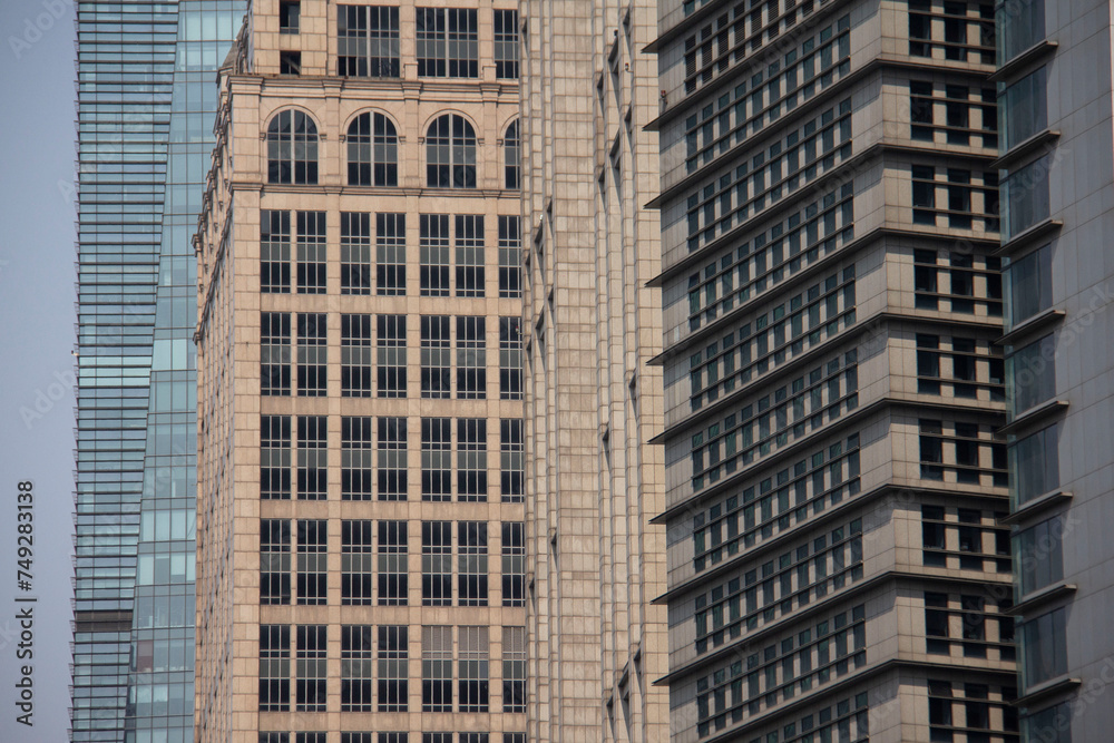Fototapeta The city of Shanghai has many tall towers, as well as shapes with different arch