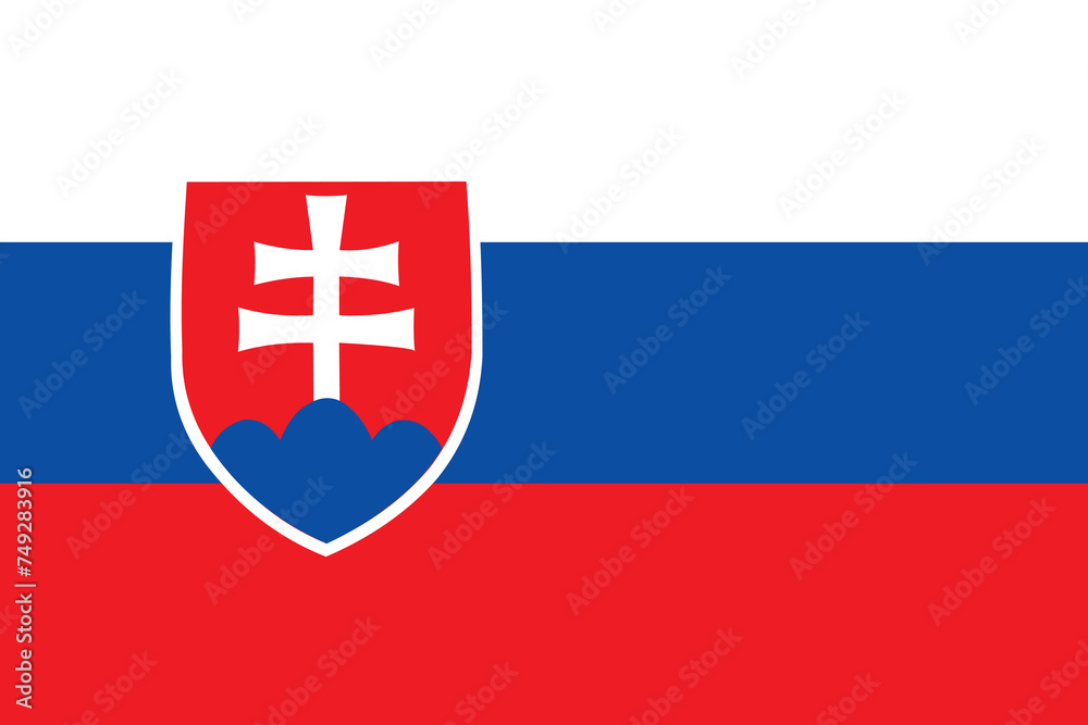 Fototapeta Close-up of white, blue and red national flag of European country of Slovakia with white cross