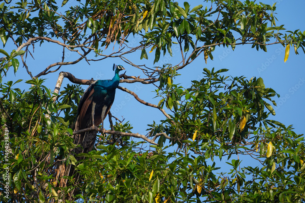 Fototapeta Indian peafowl on a tree, Pavo cristatus in Sri Lanka